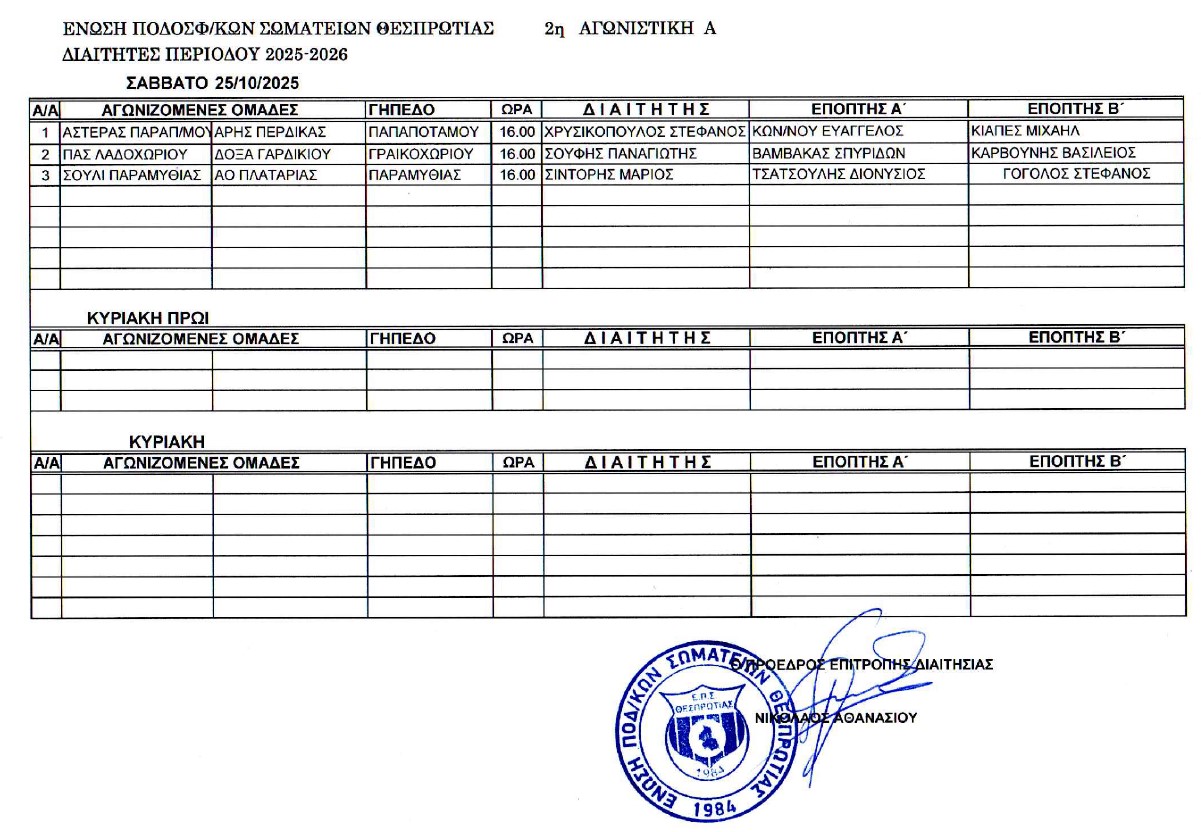 Οι Διαιτητές του Κυπέλλου Ερασιτεχνών ΕΠΣ Θεσπρωτίας 2025-2026 (ορθή επανάληψη)