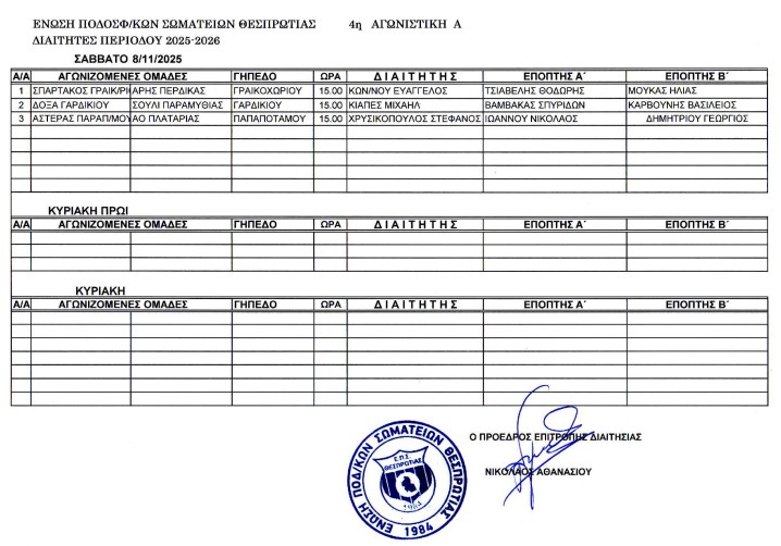 ΠΡΟΚΗΡΥΞΗ ΥΠΟΔΟΜΩΝ Κ-14 Κ-12 Κ-10 Κ-8 ΕΠΣ ΘΕΣΠΡΩΤΙΑΣ 2025-2026