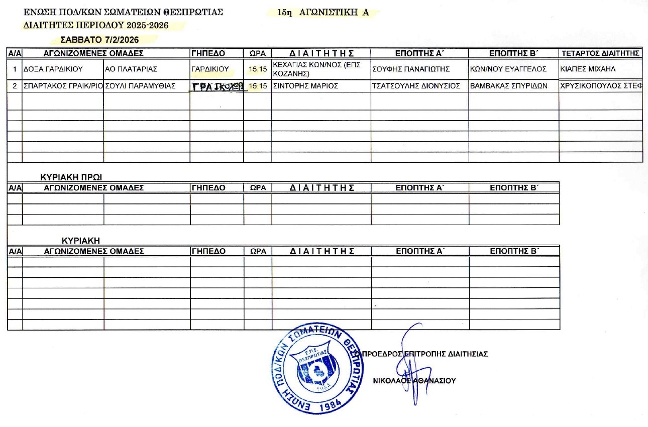 ΑΠΟΣΤΟΛΕΣ ΜΙΚΤΩΝ ΟΜΑΔΩΝ ΕΠΣ ΘΕΣΠΡΩΤΙΑΣ - ΕΠΣ ΗΠΕΙΡΟΥ 14.01.2026